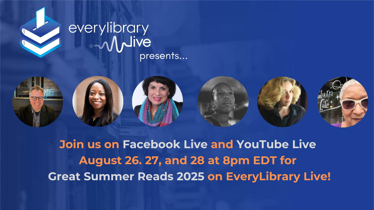 This week, we are excited to bring you three nights of great summer reads. Each conversation highlights bold voices and unforgettable stories. From speculative fiction that doubles as revolution, to mysteries with sharp social edges, to magical chaos set in a failing suburban mall, EveryLibrary Live! is your place to discover new authors, revisit favorite genres, and join conversations that matter.