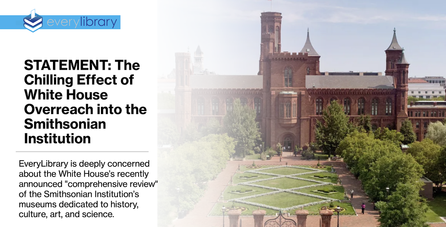 EveryLibrary is deeply concerned about the White House’s recently announced "comprehensive review" of the Smithsonian Institution’s museums dedicated to history, culture, art, and science.